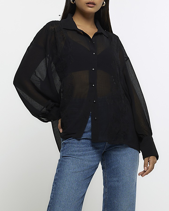 Product code: Black chiffon blouse long sleeve shop